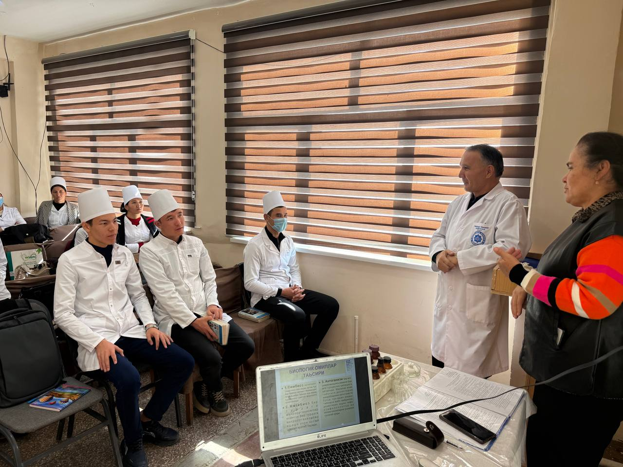 Сухбат давомида Урганч Давлат Тиббиёт институти доценти Саъдуллаев О.К. хам талабаларга ўз қимматли маслахатларини бериб ўтди. Талабалар учун сухбат айни кунларда фойдали ва мазмунли бўлганини айтиб ўтишди.